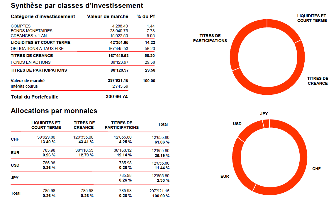 In the banking industry, a wide range of Client Reports exist, each with its own presentation. But in general, a typical Client Report usually contains information presented in one or several sections. A section can be designed to be showed either on a single page, like for example an overview or a summary: