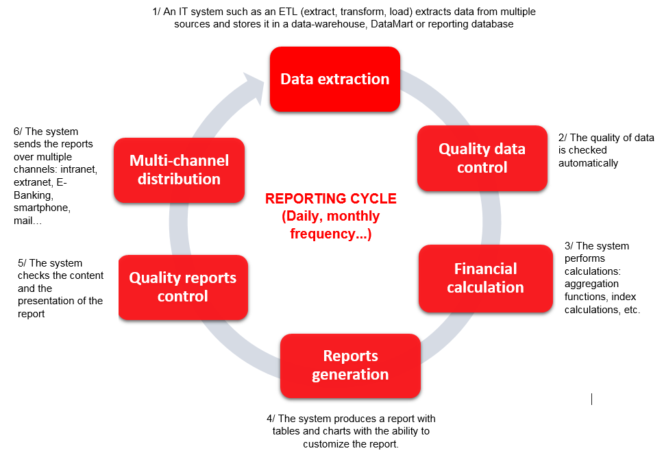 Client reporting follow different stages of a cycle process, shown in the diagram below: