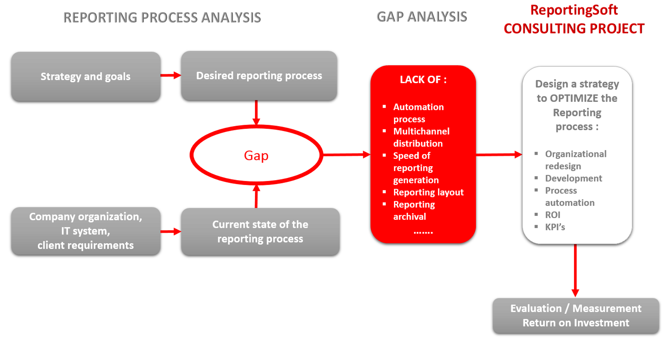 Reporting process optimization modelTo avoid operational and technical errors in the process, we help you design and implement the best reporting process and supporting IT systems: